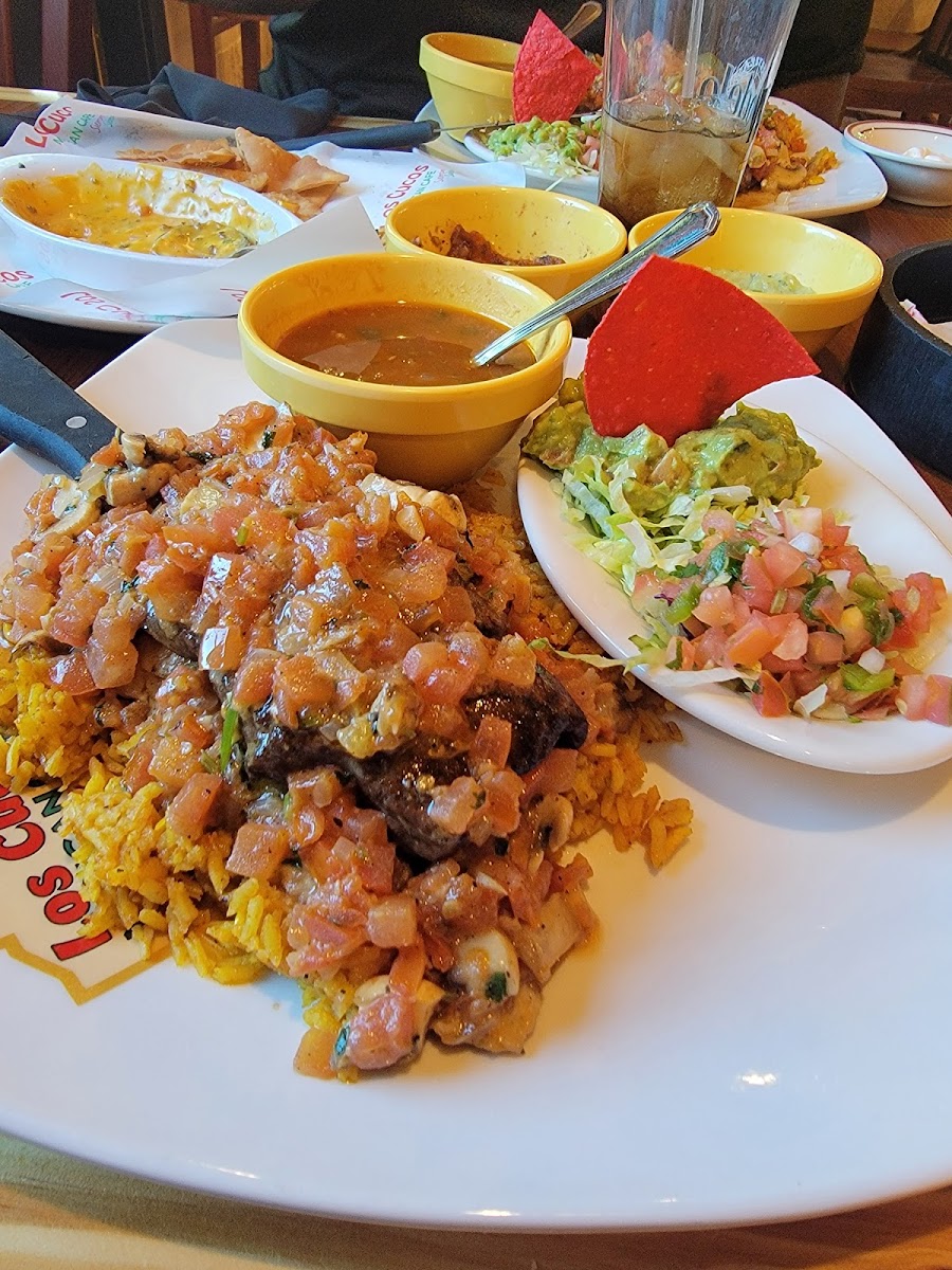 Mucho Loco is renowned for its impressive array of authentic Mexican flavors. Start your culinary adventure with their Chimichangas, where large flour tortillas are filled to the brim with your choice of ground beef or fajita chicken. Each chimichanga is deep-fried to golden perfection and topped with fresh lettuce, rich chile con queso, and a dollop of sour cream, creating a dish that bursts with flavors for only $16.99 to $20.99.